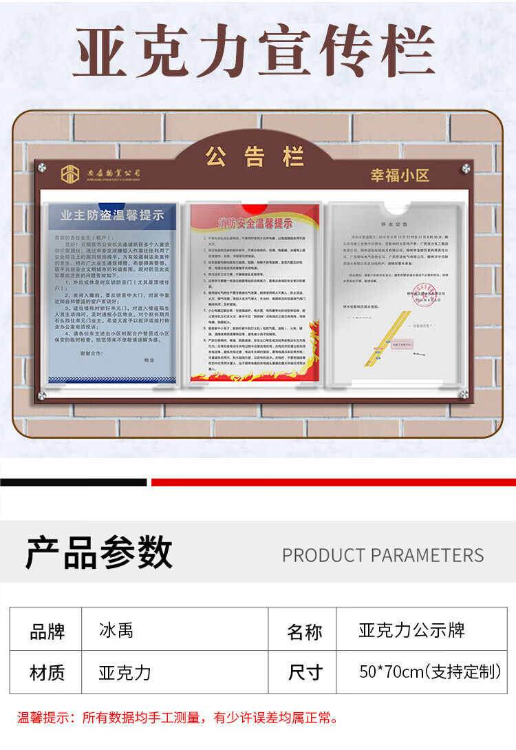 冰禹 宣传栏公示栏定制 Bj156 50*70cm 1个