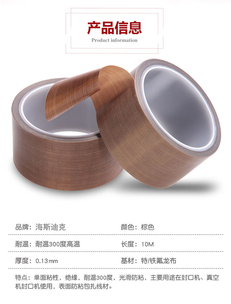海斯迪克 铁氟龙胶带 gnjz-5089 10mm宽*10m长 1卷