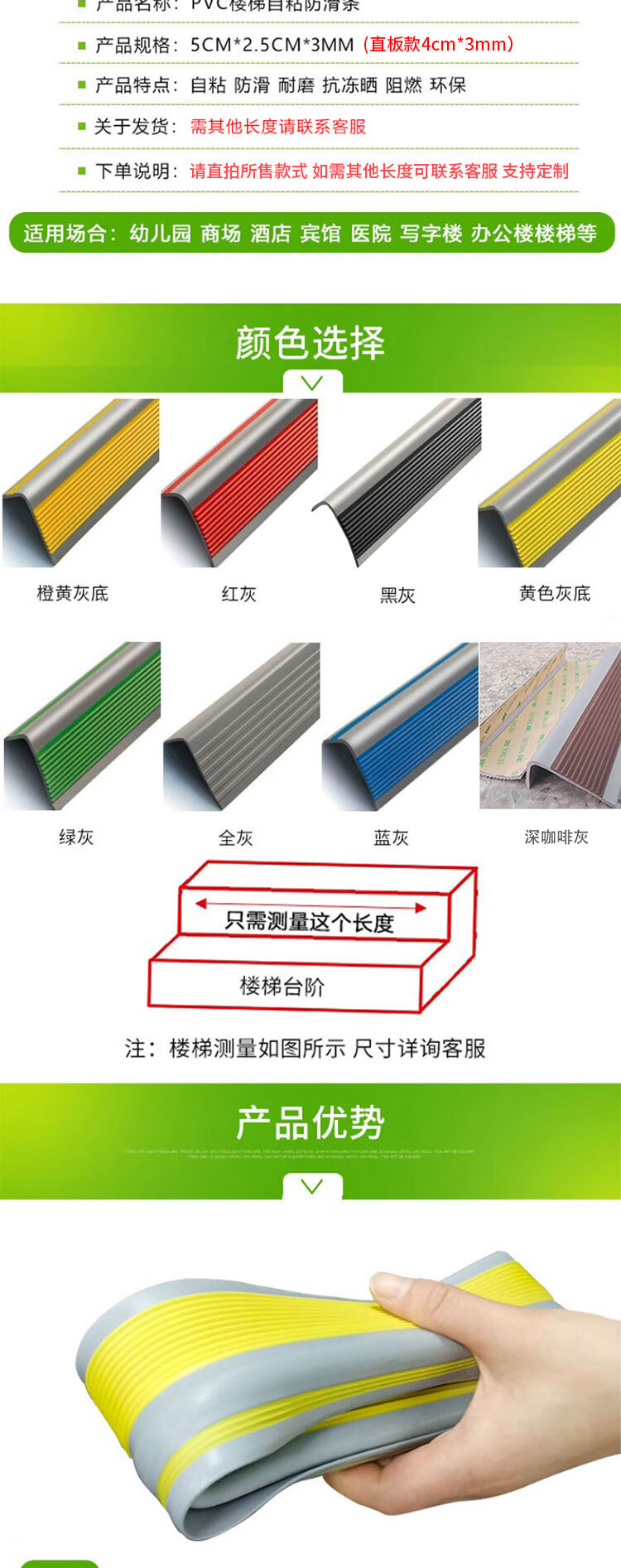 冰禹 楼梯防滑条 BJjj-155 PVC 4cm*1m 直板款黑色 1个