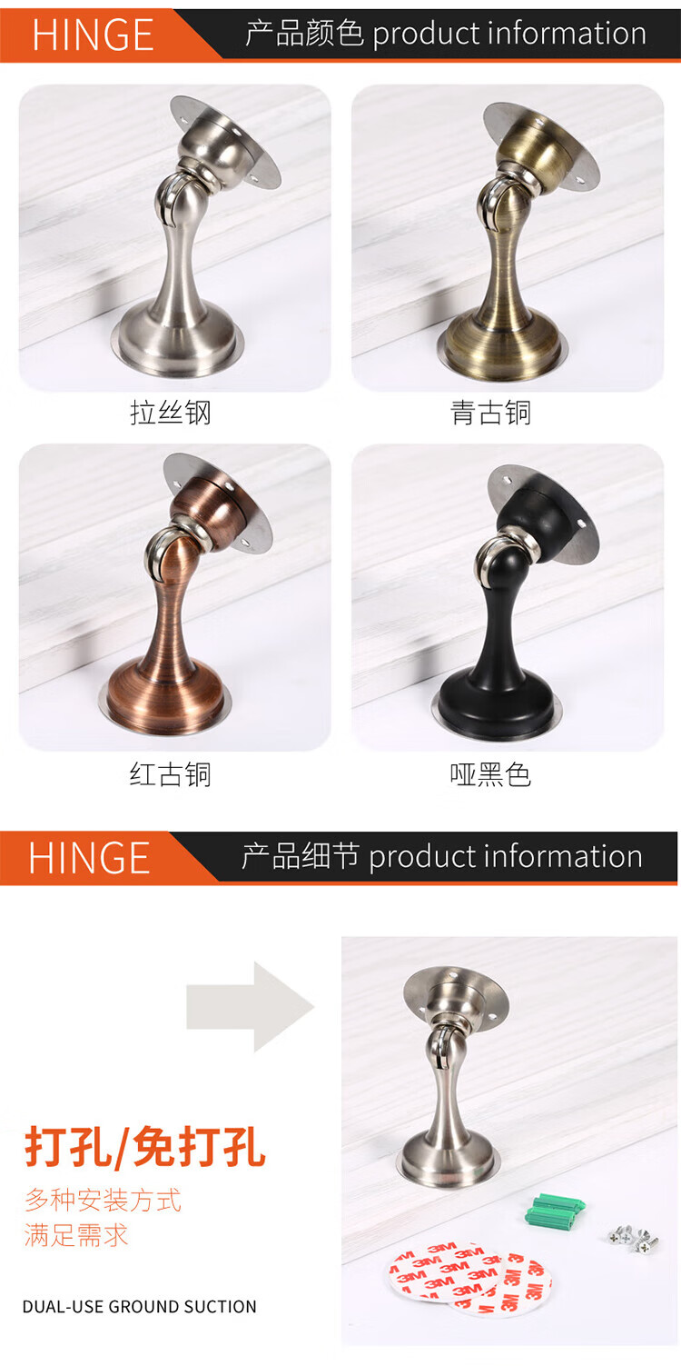 冰禹 门吸 BO-149 不锈钢 免打孔孔红古 1个