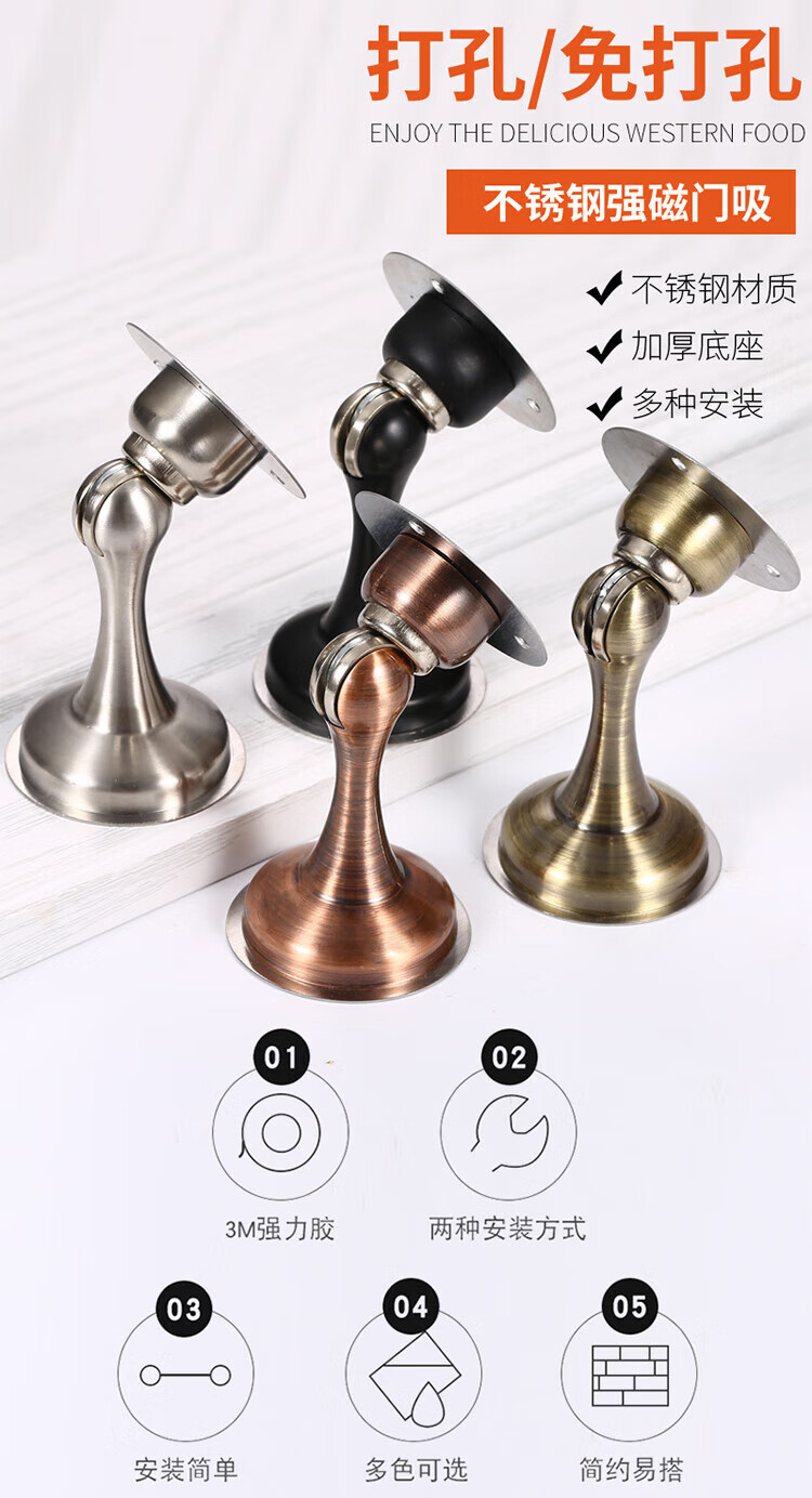 冰禹 门吸 BO-149 不锈钢 免打孔雅黑 1个