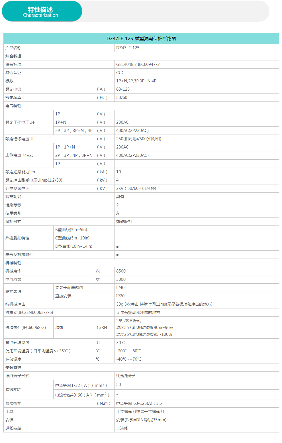 DZ47LE-125 3P+N C125A 10KA 30mA ELE