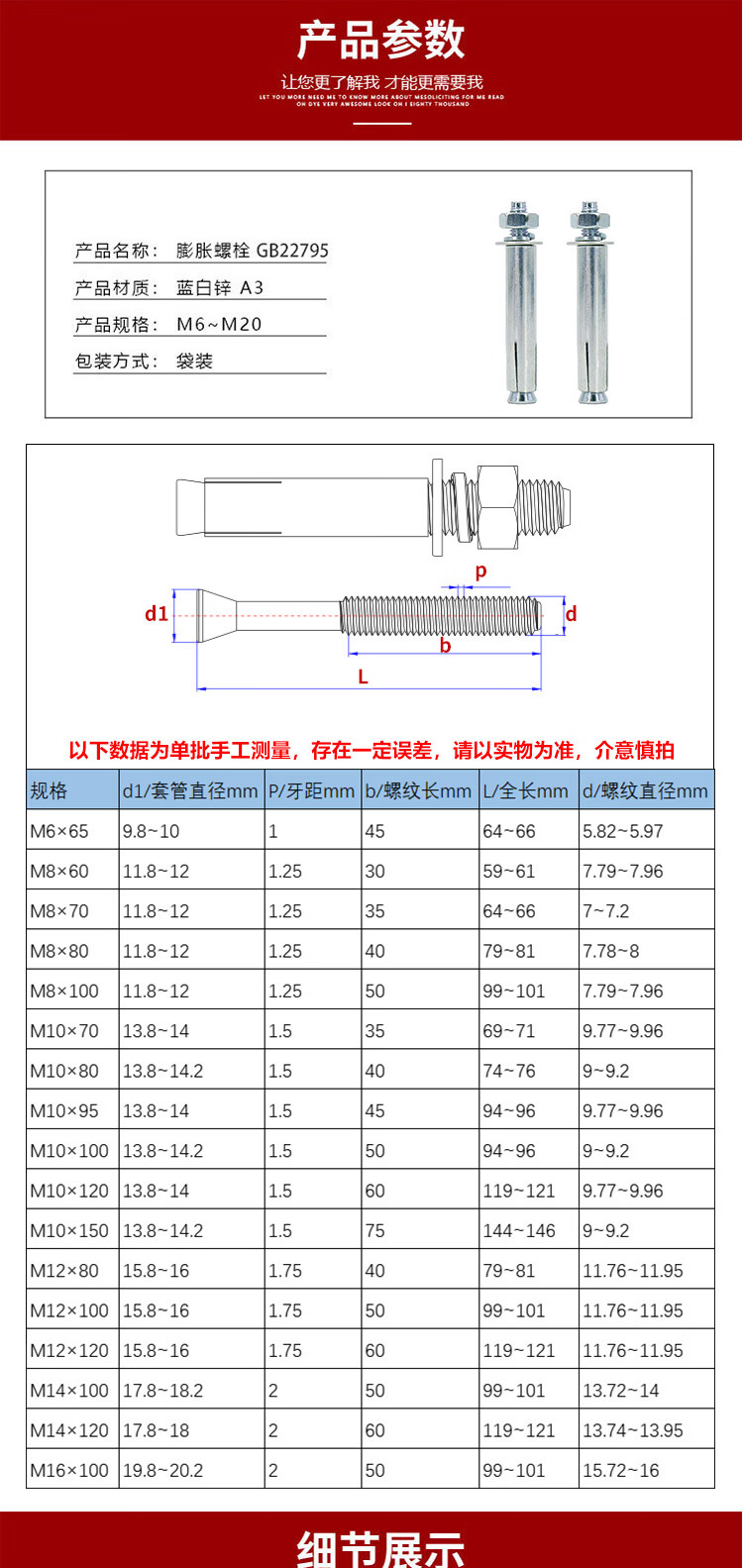 海斯迪克 膨胀螺栓 gnjz-43 蓝白锌 国标 4.8级 M12*100 1个