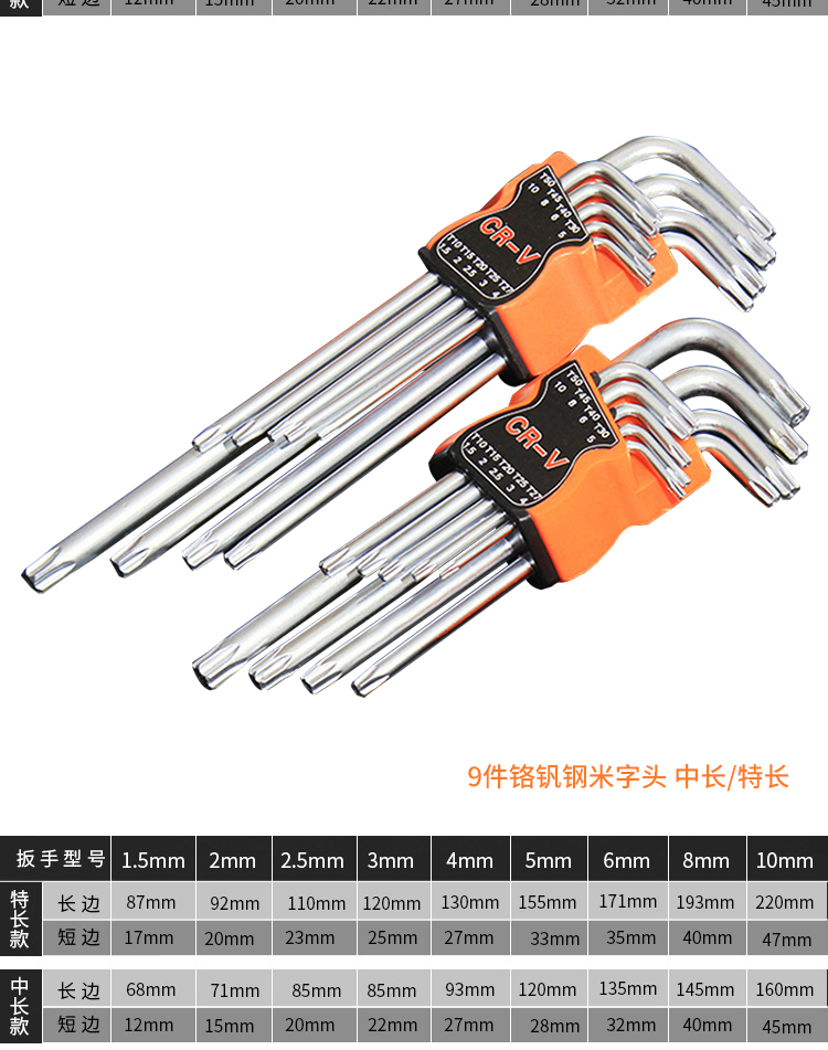 海斯迪克 内六角扳手套装 gnjz-65 铬钒钢 球头 中长款 9件 1套