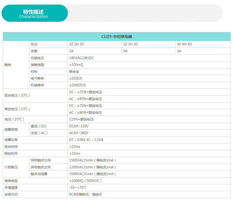 德力西电气 CDZ9系列小型电磁继电器 CDZ954LJ 54P L(发光管) AC12V 1个