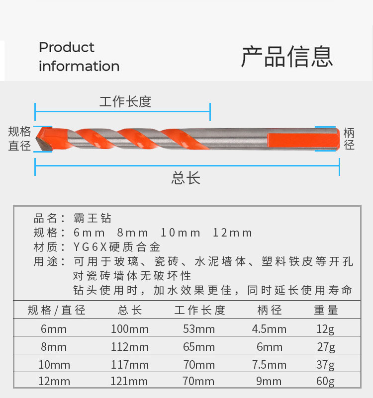 海斯迪克 霸王钻头 gnjz-2082 合金 6mm 三角柄 1支