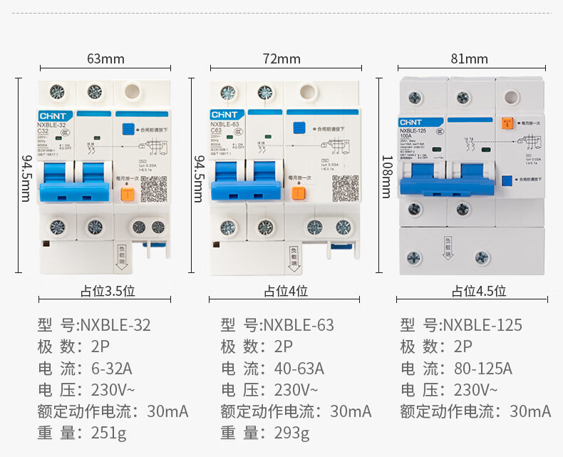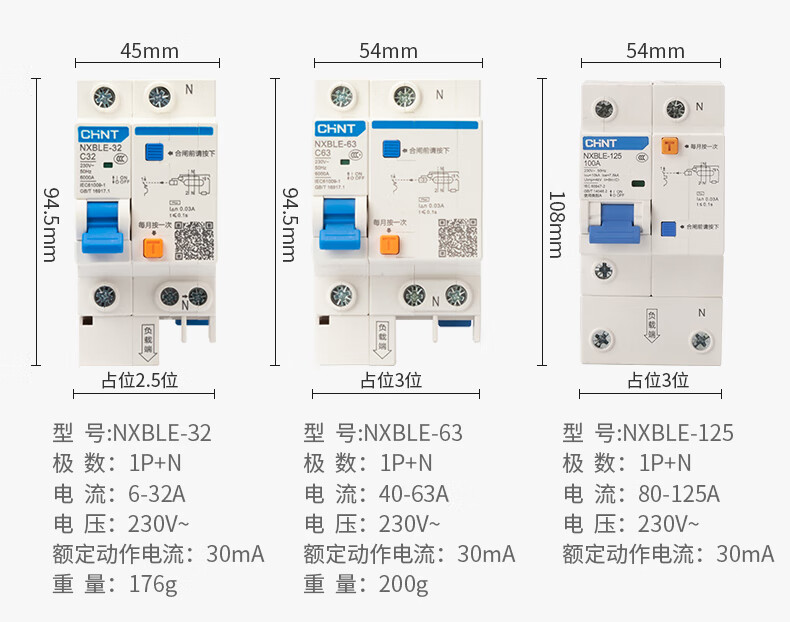 正泰 NXBLE-32系列剩余电流动作断路器 NXBLE-32 2P C20 30mA 6kA 20A C型 1个