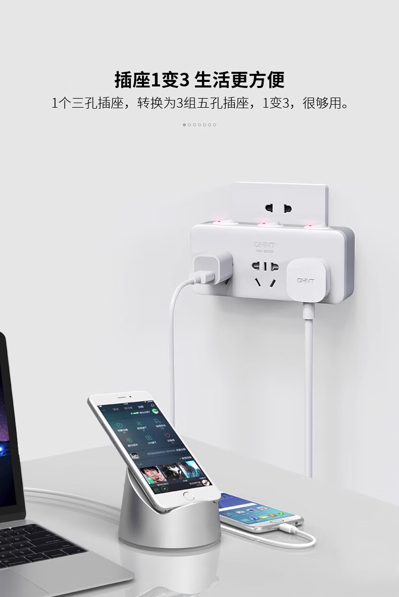 正泰 魔方智能插座 Sunrise-6-1040 黑色 无线 4位总控带3USB 1个