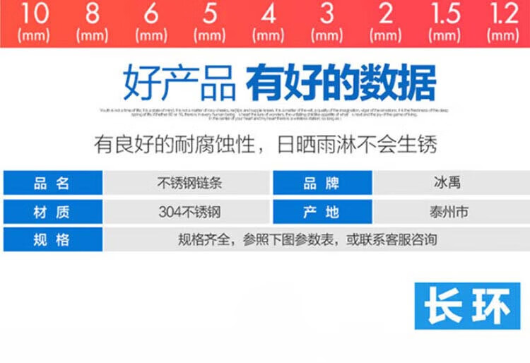 冰禹 不锈钢链条 BYJZ-1402 304不锈钢 8mm粗 1m 1件