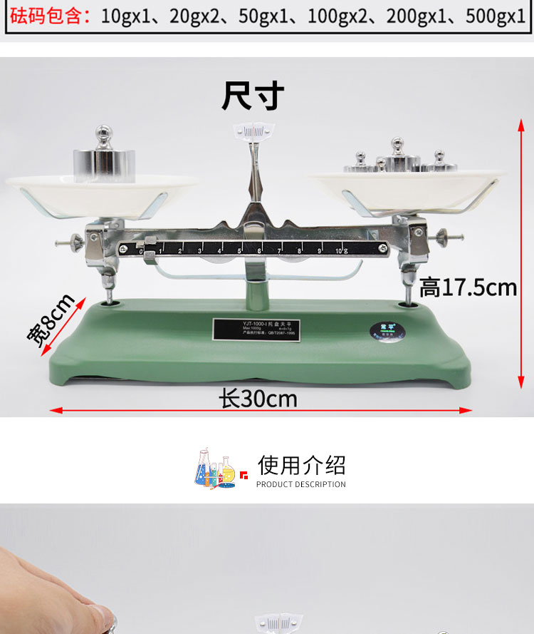 冰禹 托盘天平 BY-2327 量程1000g 1个