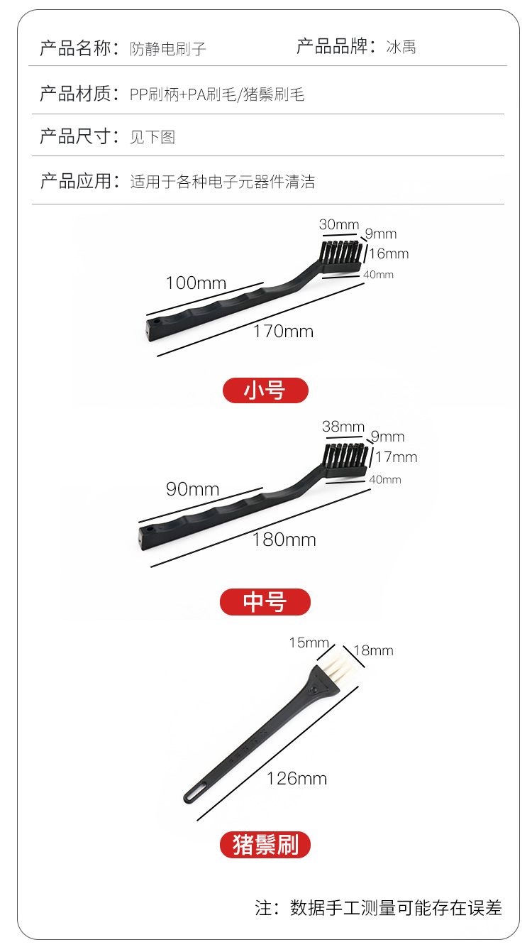冰禹 防静电毛刷 BJ-148 小号 长170mm 1个