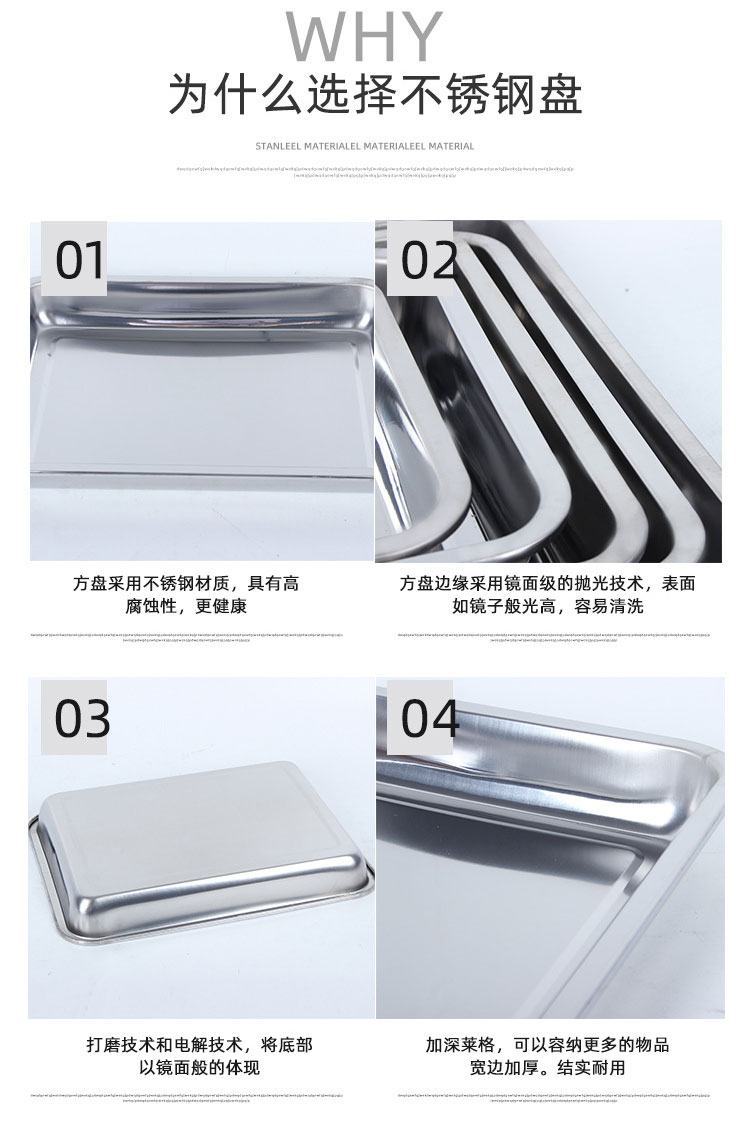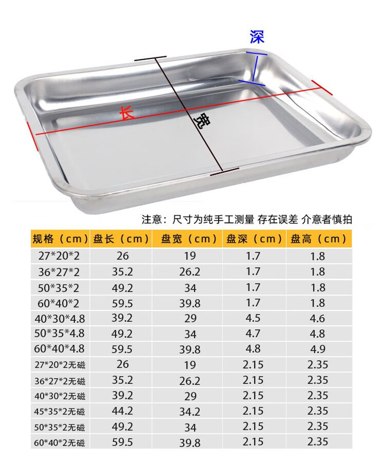 海斯迪克 不锈钢方盘 gnjz-171 无磁加厚40*30*4.8深 1个