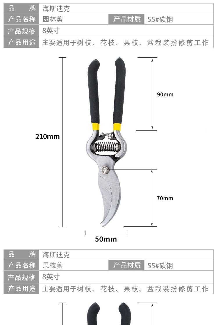 海斯迪克 果树剪 gnjz-567 碳钢 黑柄弯头 1把