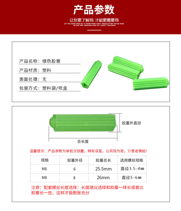 海斯迪克 塑料膨胀管 gnjz-1385 绿色 M6 1000个 1件