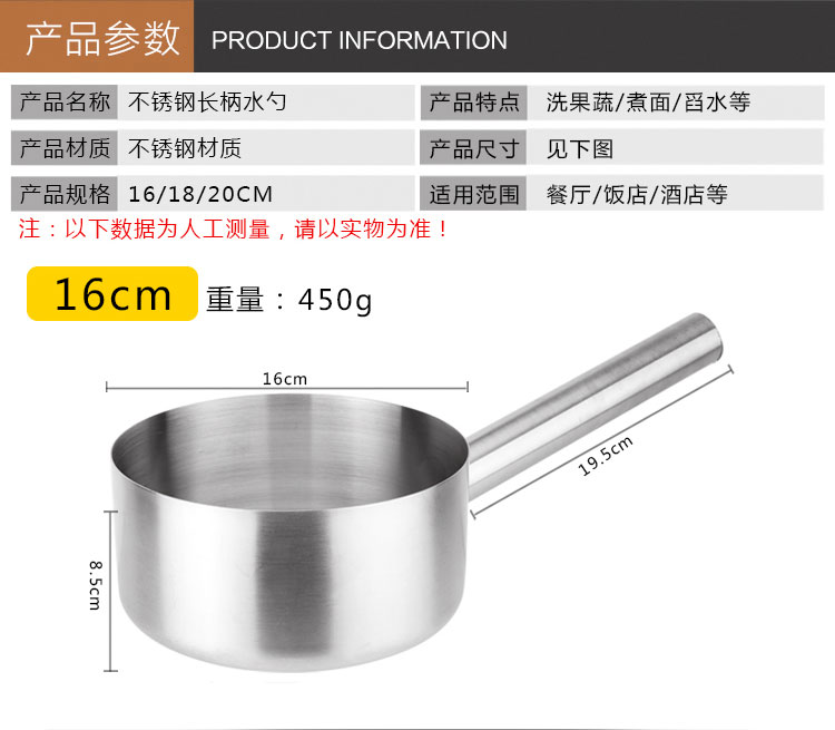 海斯迪克 不锈钢水勺水瓢 gnjz-5364 口径16CM 1个