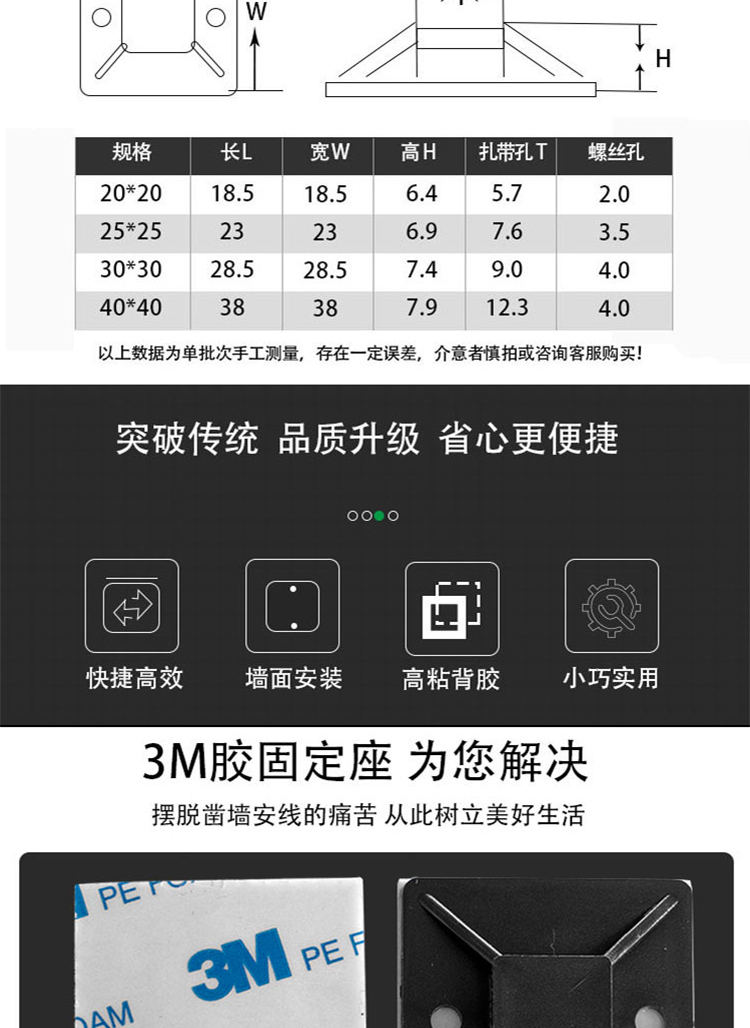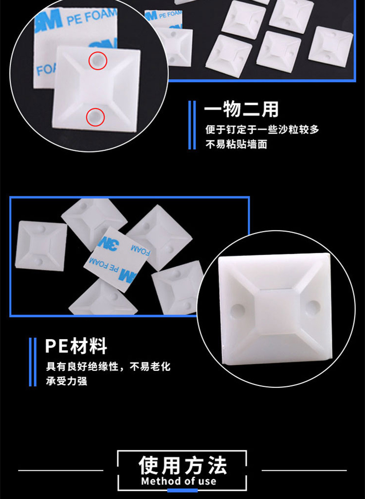 海斯迪克 3M胶自粘式不干胶吸盘 gnzy-15 白色 25×25mm PE 100只 1件