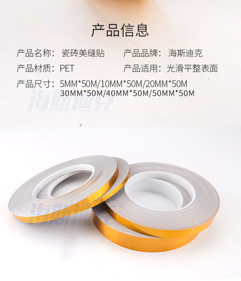 海斯迪克 瓷砖美缝贴 gnxy-130 金色 宽40mm 长50米 PET 1卷