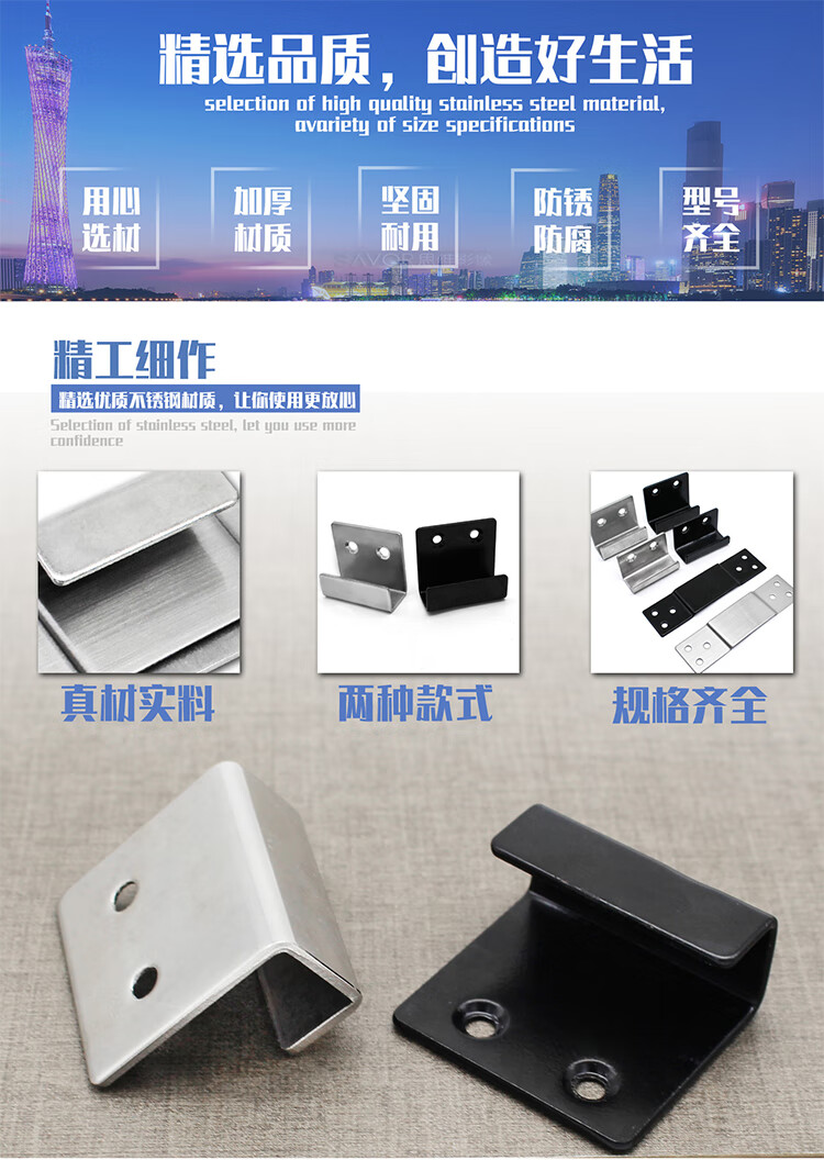 海斯迪克 加厚瓷砖挂码 gnxy-134 不锈钢 本色 黑色直片 1个