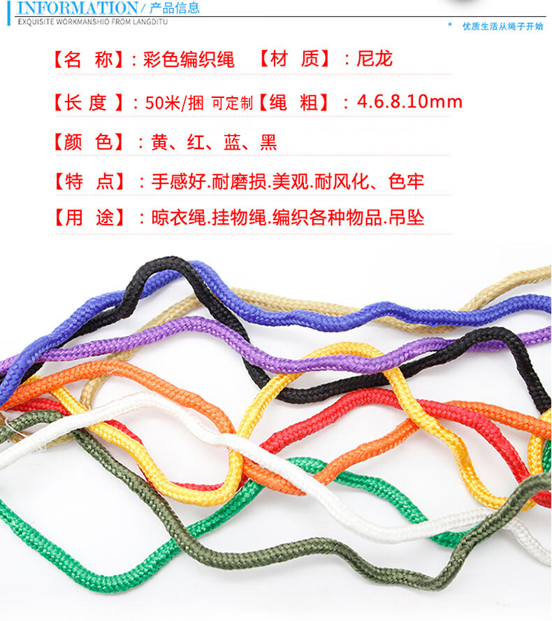 海斯迪克 束口打包尼龙绳 gnxy-298 8mm(50米/捆)红色 50米 1捆
