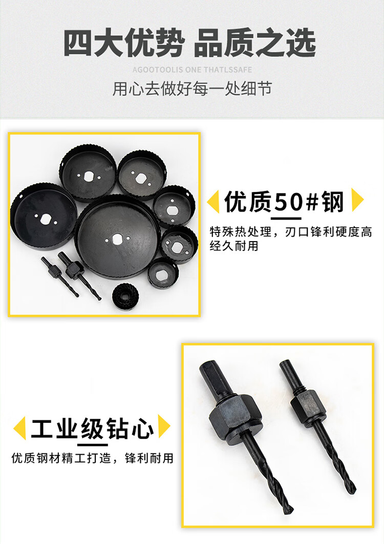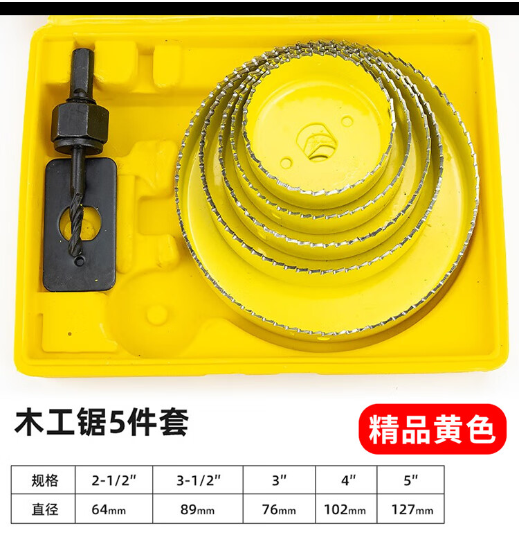 海斯迪克 工业级木工开孔器套装 gnxy-349 钢 精品黄色5PC 5个 1套