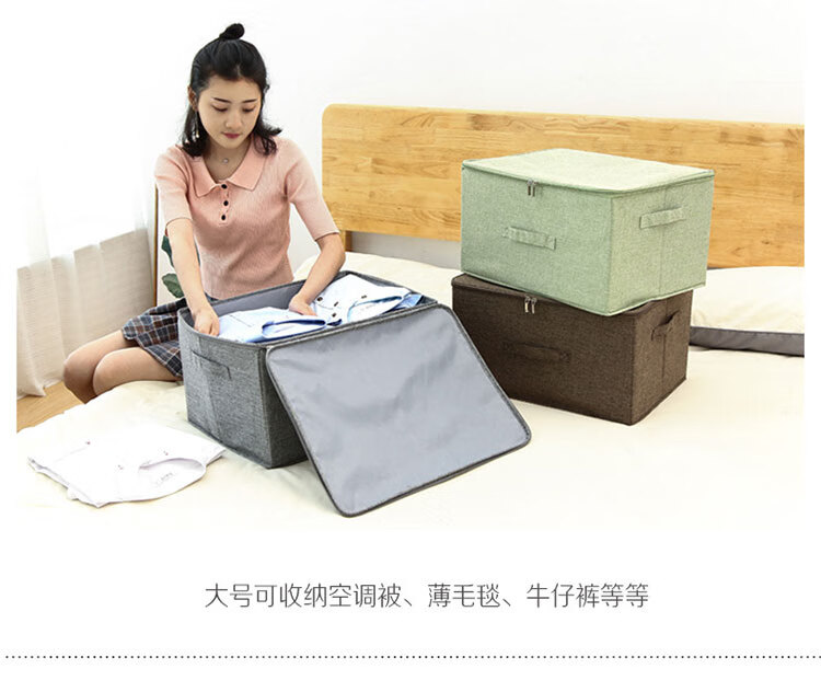 海斯迪克 拉链式箱子 gnxy-458 涤纶+PP 米色 大号 1个