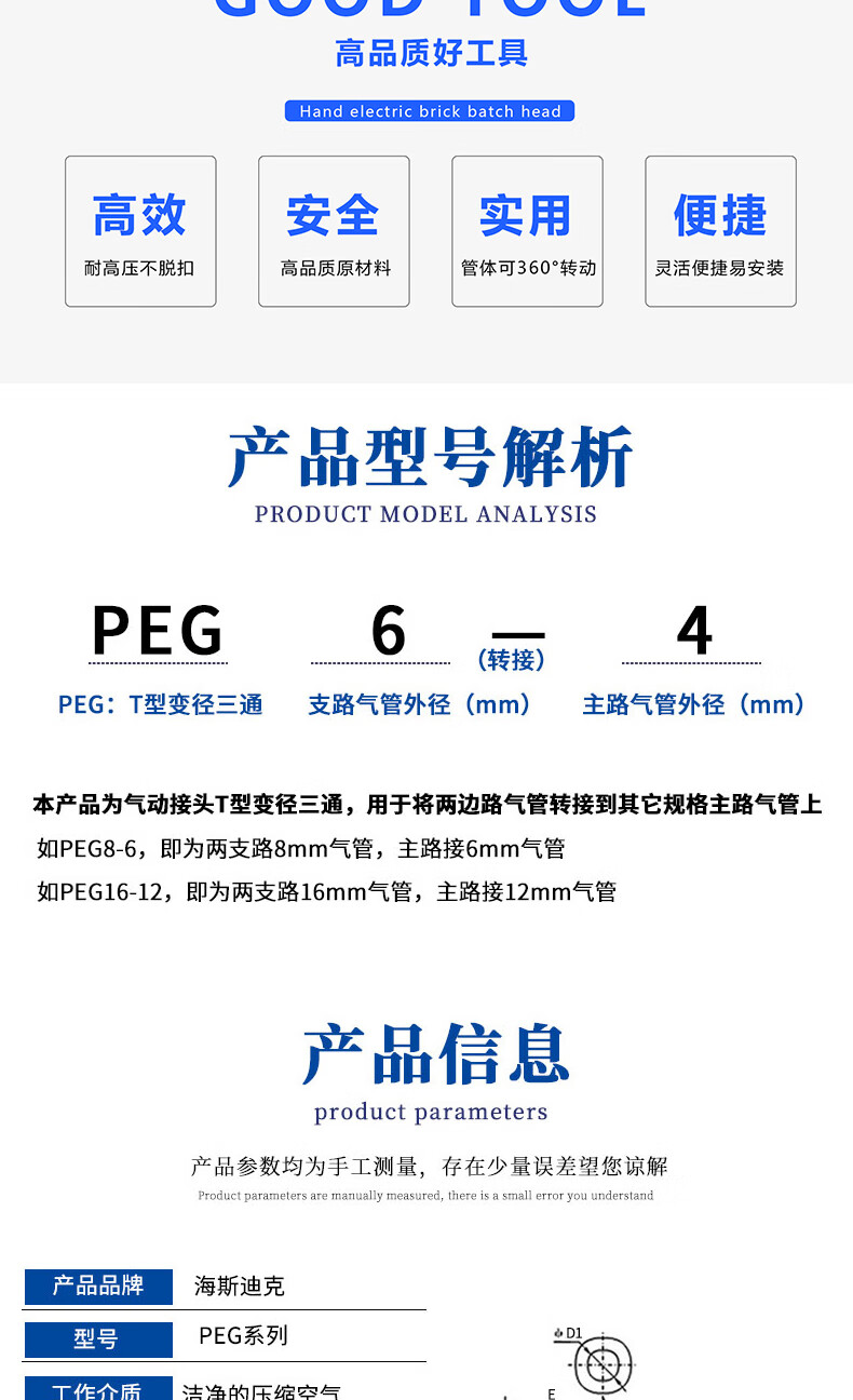 海斯迪克 T型变径三通 gny-135 PEG10-8 1个