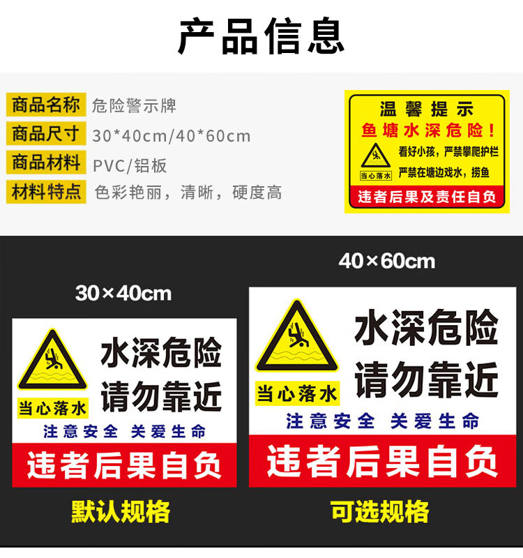 冰禹 警示牌 BYyn-607 铝板 水深危险04 30*40cm 1个