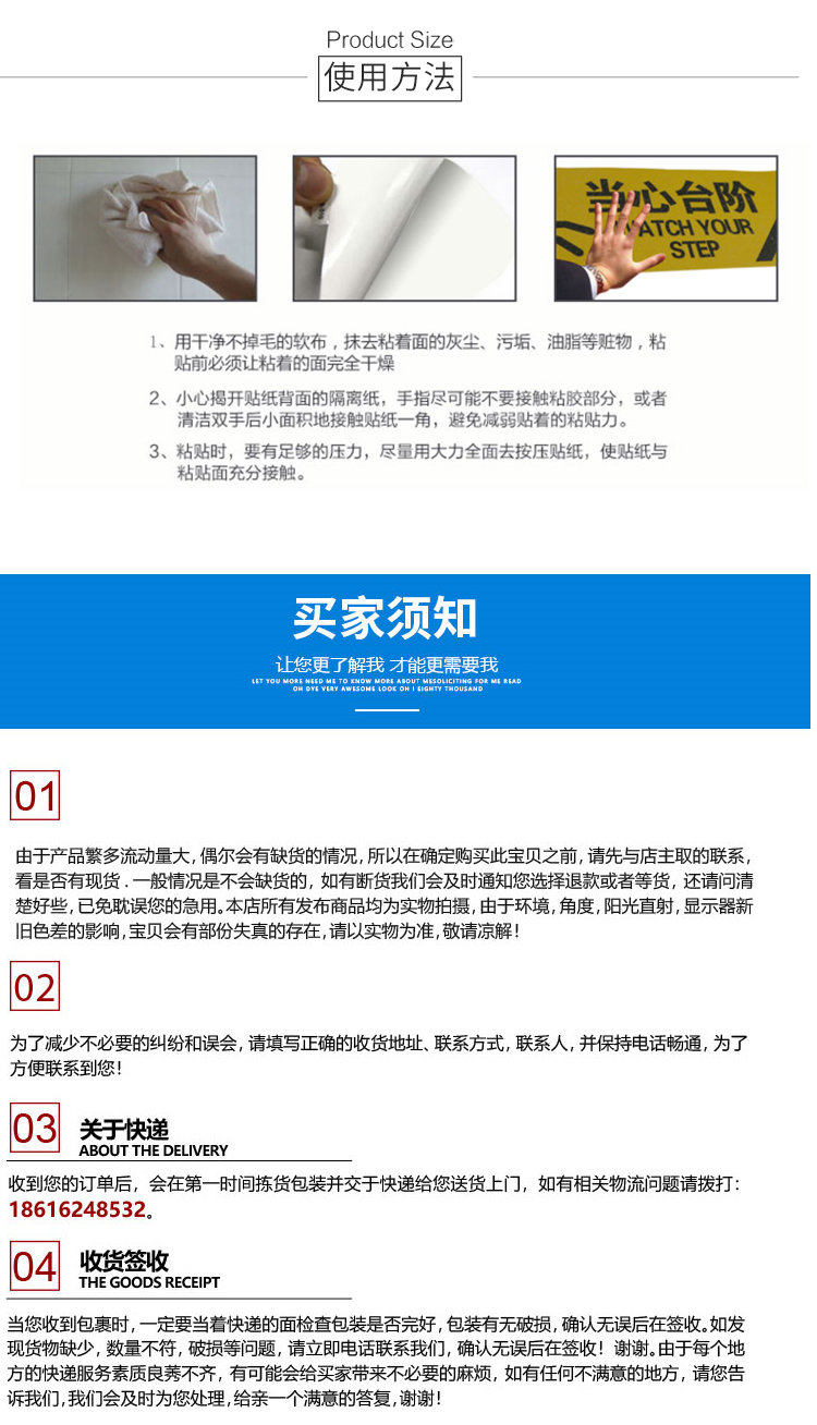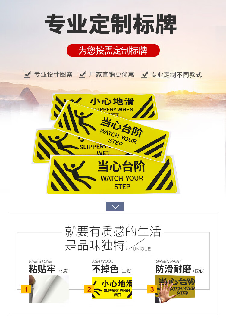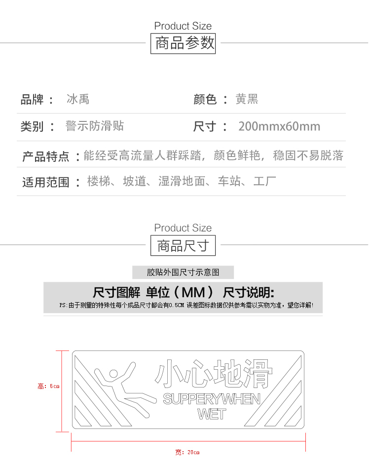 冰禹 温馨提示贴纸 BYyn-85 当心滑倒 20*6CM 1张