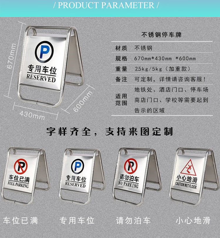 海斯迪克 不锈钢A字告示牌 gny-619 禁止停车 1个