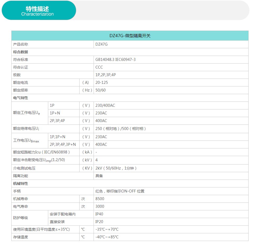 • 商品名称:德力西电气 DZ47G系列隔离开关