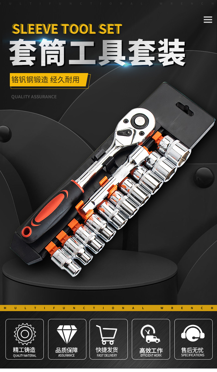 海斯迪克 套筒扳手 gnjz-3117 1/4小飞 12个 1套