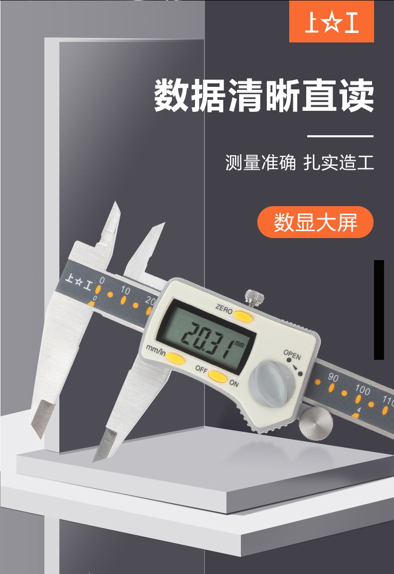 上工 三按键电子数显卡尺(方杆) AS0020201 0-200mm 0.01 1把