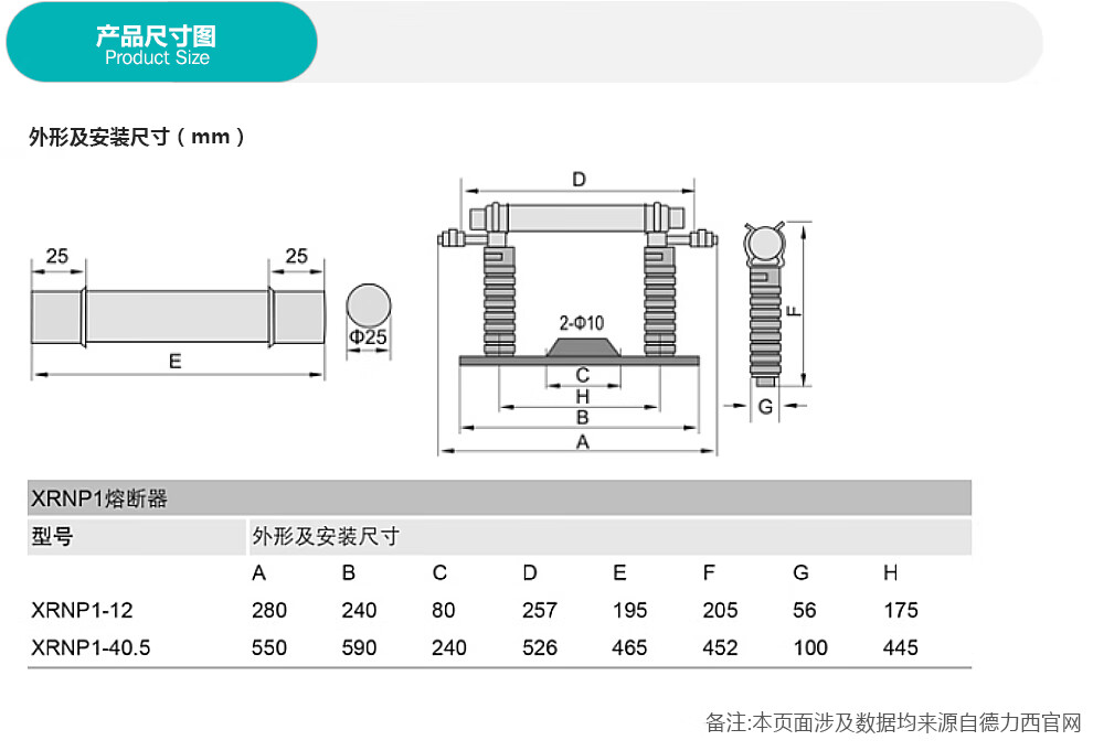 德力西电气 XRNP1系列高压限流熔断器 XRNP140P5TP5 40.5kV 0.5A φ25*465 1只