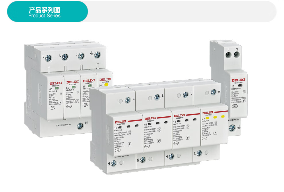 德力西电气 电源类电涌保护器 DZ47SY2406440YX II类 20kA 3P+N AC440V 1个