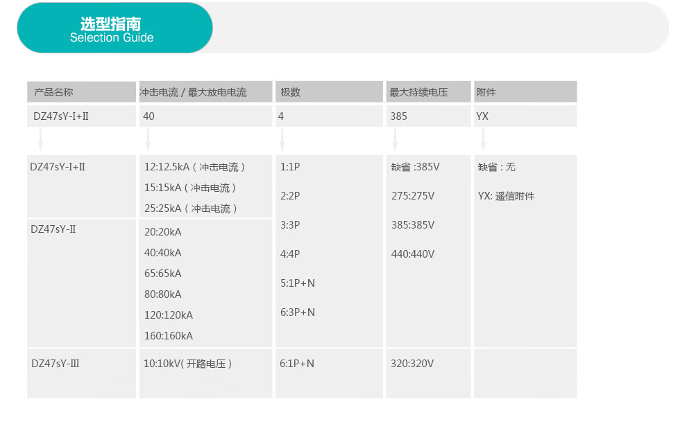 DZ47sY-II 65kA 2P 385V 标称放电电流30kA
