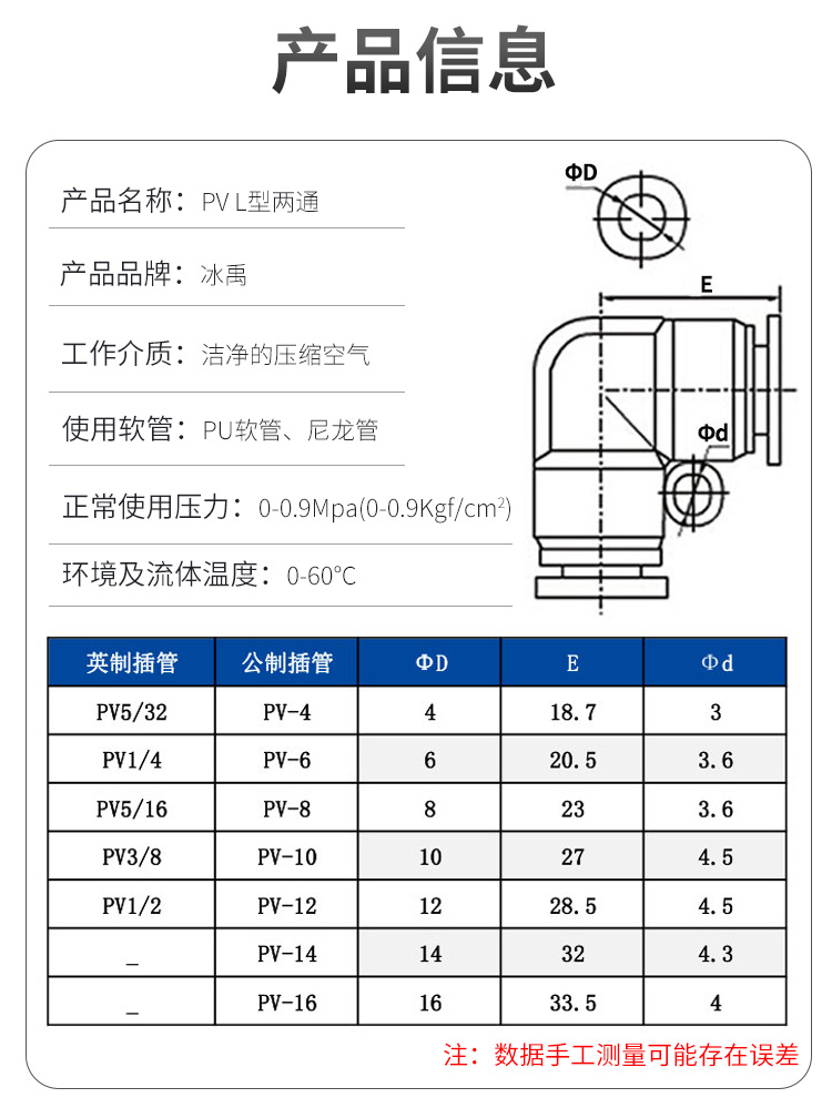 冰禹 L型二通气管接头 BYS-246 PV-14 1个
