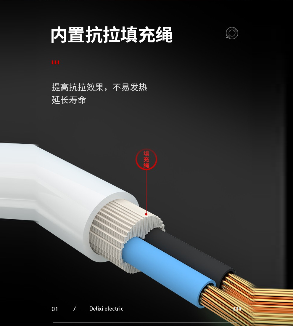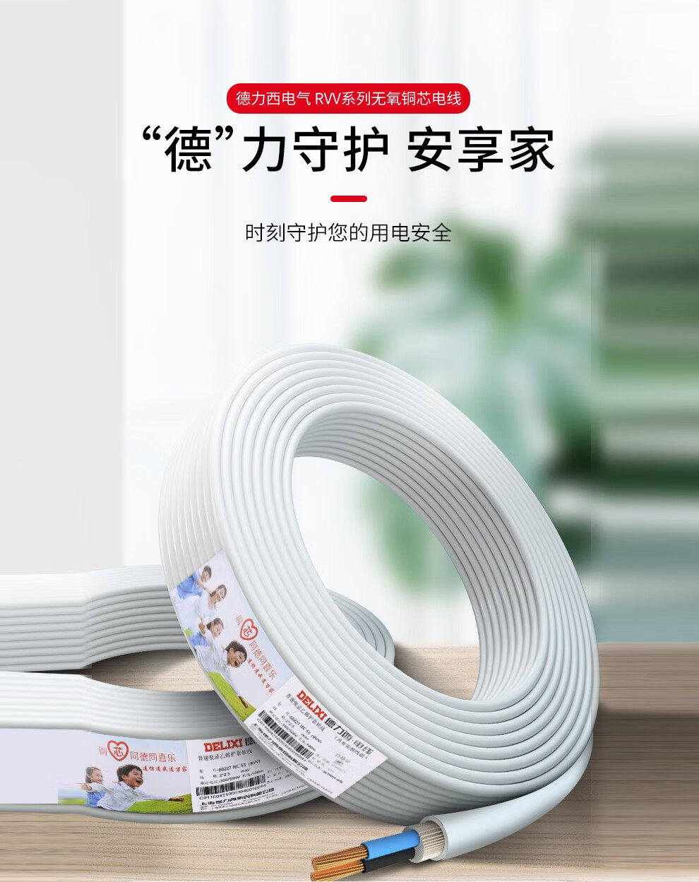 德力西电气 RVV 铜芯护套软线 DL16011B2026 白色 3*2.5mm² 1卷