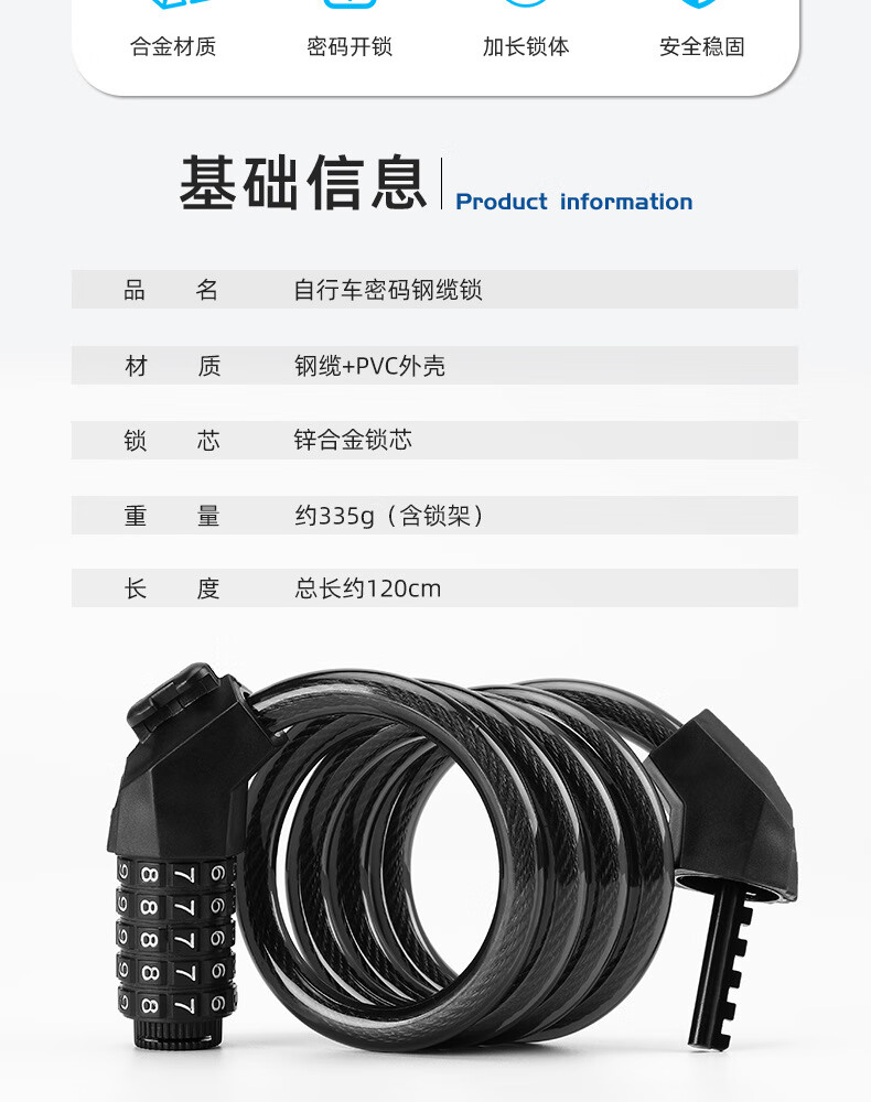 冰禹 山地自行车锁 Bj98 防水密码锁 1个