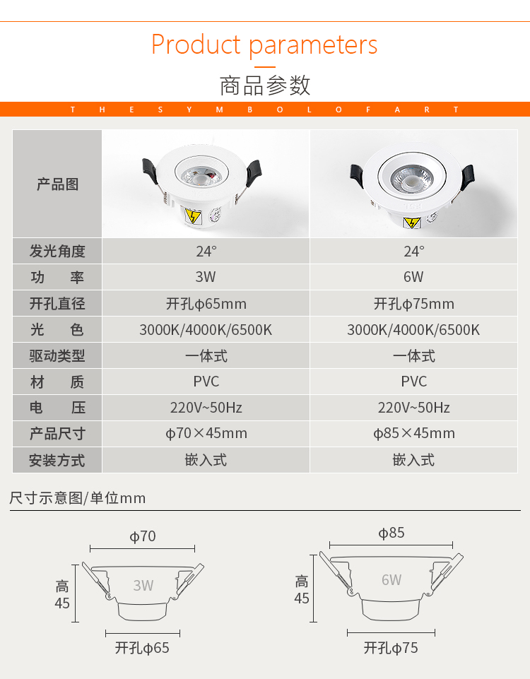佛山照明 COB天花射灯 6W 白光 φ75mm 1个