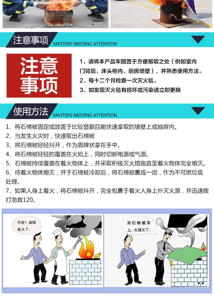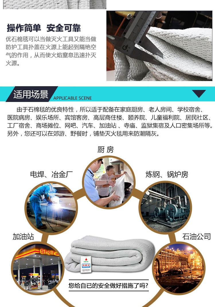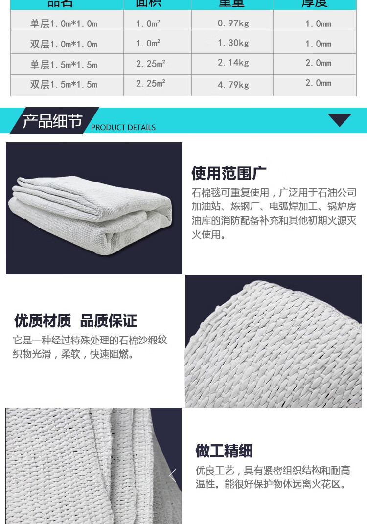 • 商品名称:文举双层石1m*1m石棉被灭火毯
