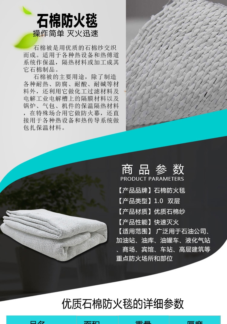 • 商品名称:文举双层1石1.5m*1.5m石棉被灭火毯
