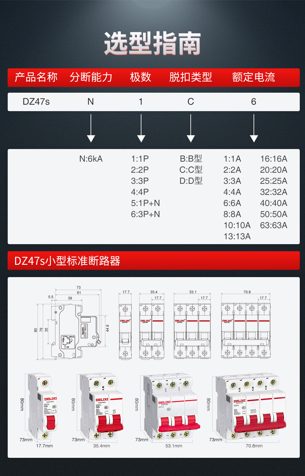 德力西电气 DZ47s系列微型断路器 DZ47SN5B20 63A 6kA 1P+N B型 20A 1个