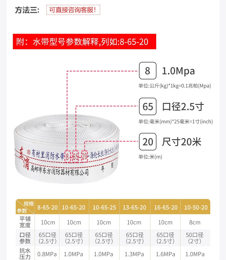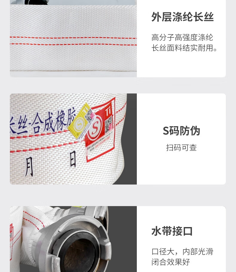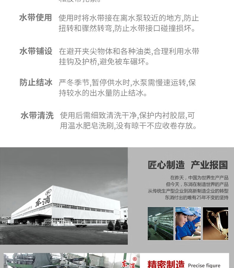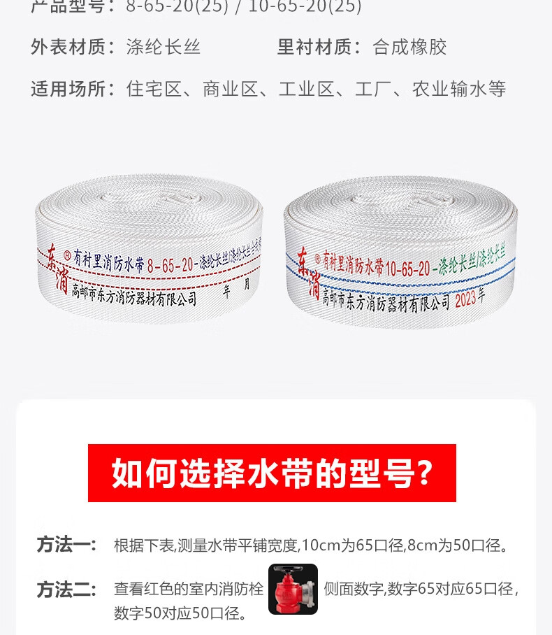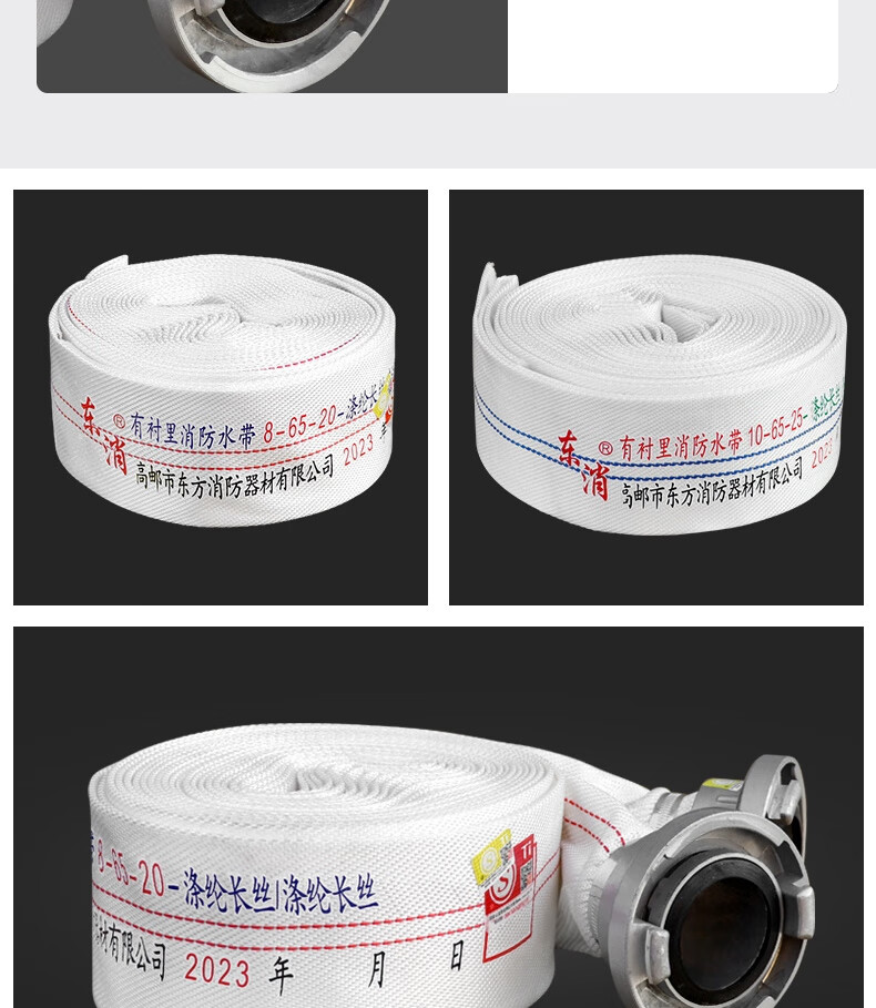 东消 13-65-20消防水带 13型65mm水管20米2.5寸光水带消防认证聚氨酯器材农用灌溉浇水单独水带 1卷