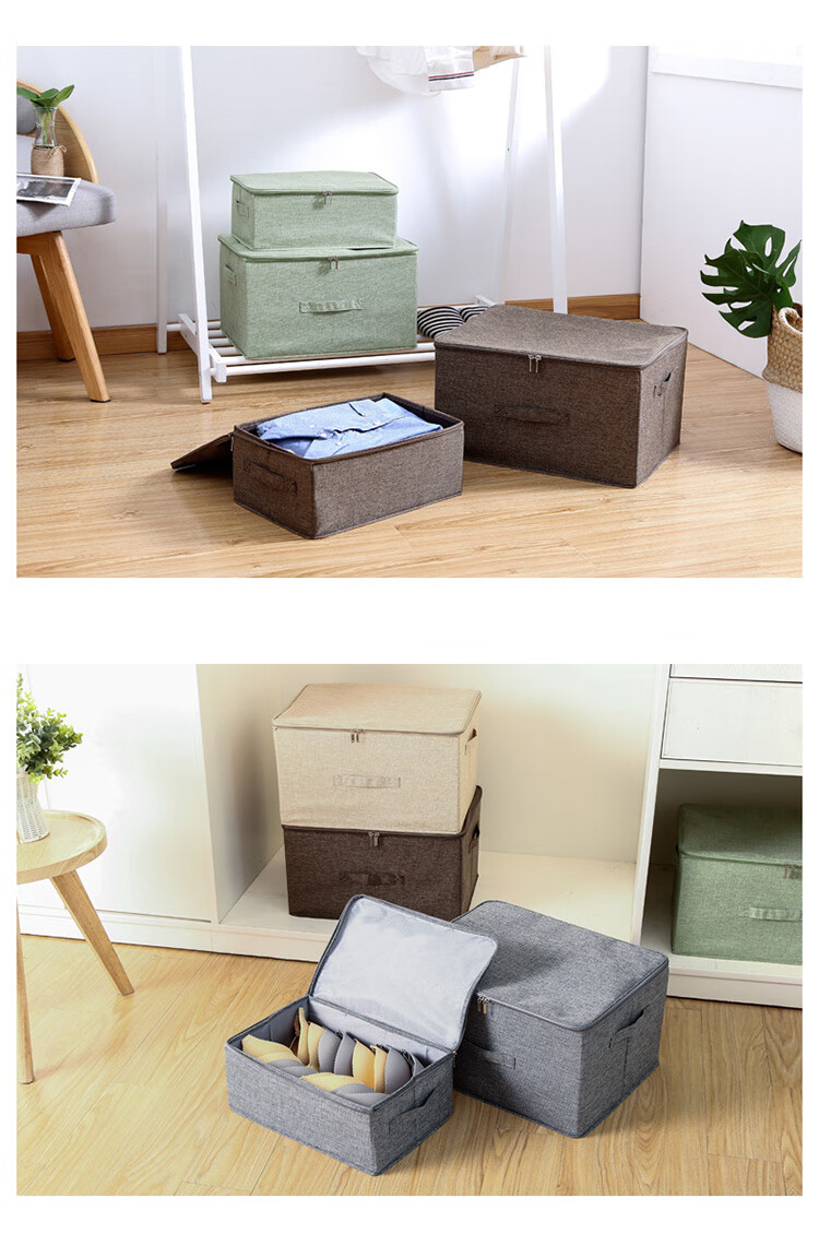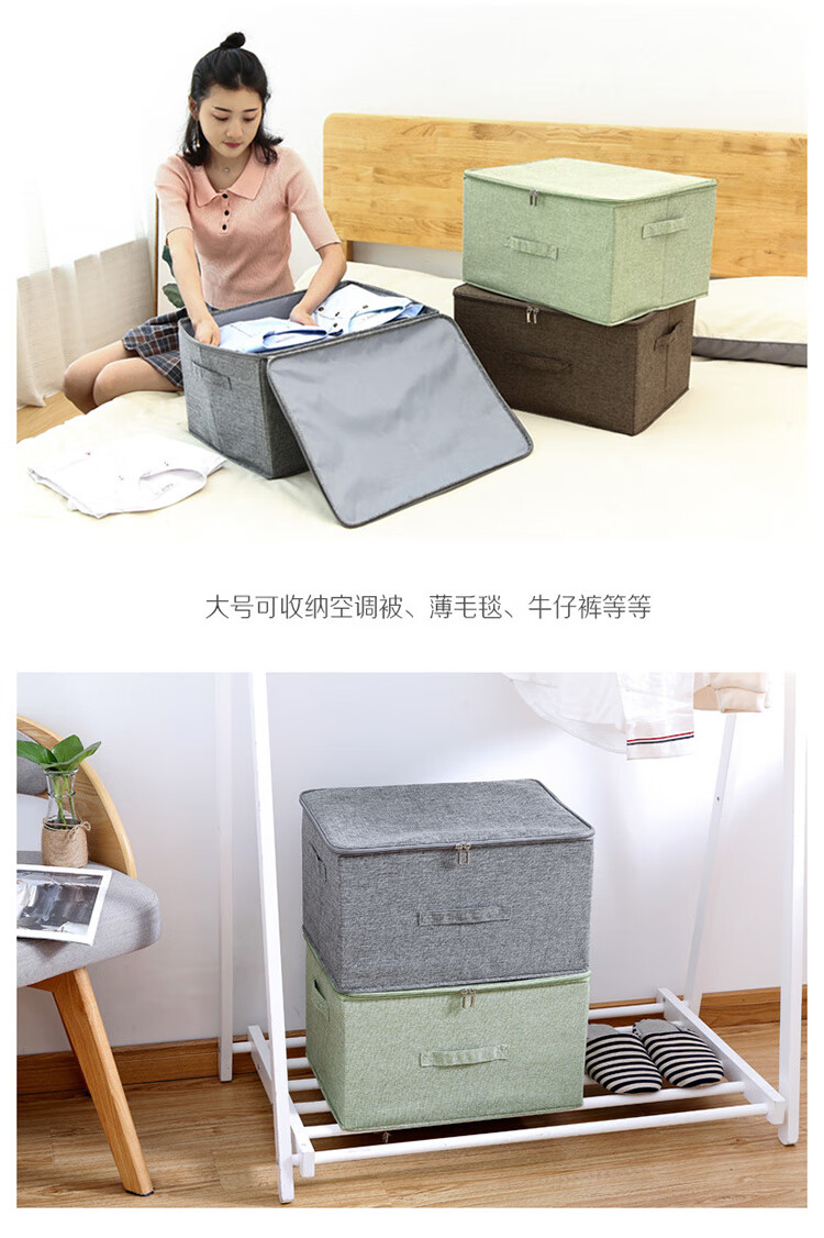 冰禹 拉链式布艺可折叠收纳箱 BYA-253 米色 大号 1个