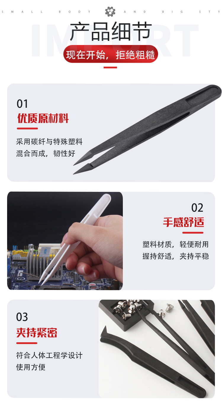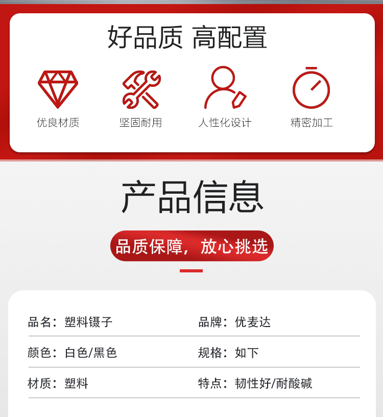 优麦达 塑料镊子 YMD025 黑 弯头 #93306 10个 1件