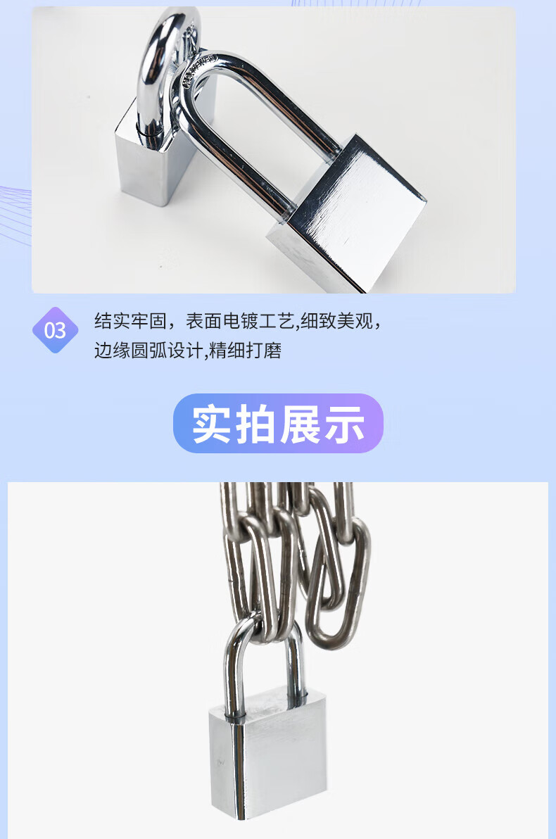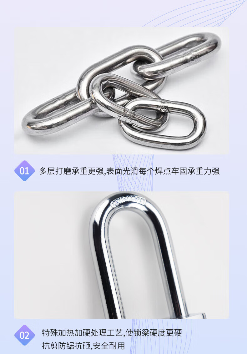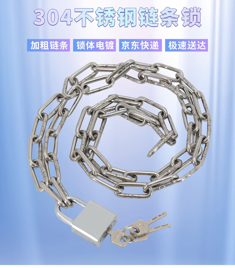 金固牢 不锈钢链条锁 KZS-356 304不锈钢 4mm链条0.5米+30mm电镀锁 不通开 1套