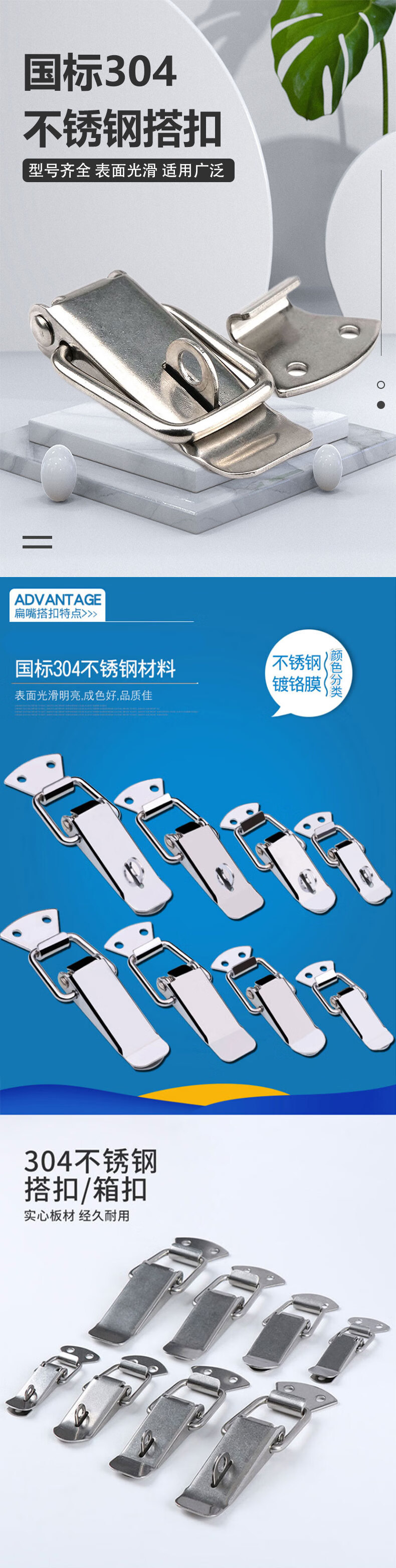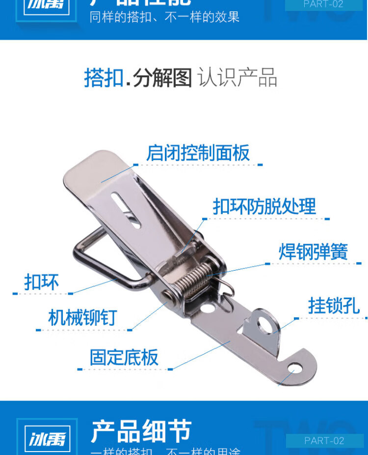 首页>紧固密封件>小五金及其他>门窗五金>锁扣>冰禹 304不锈钢鸭嘴弹簧搭扣