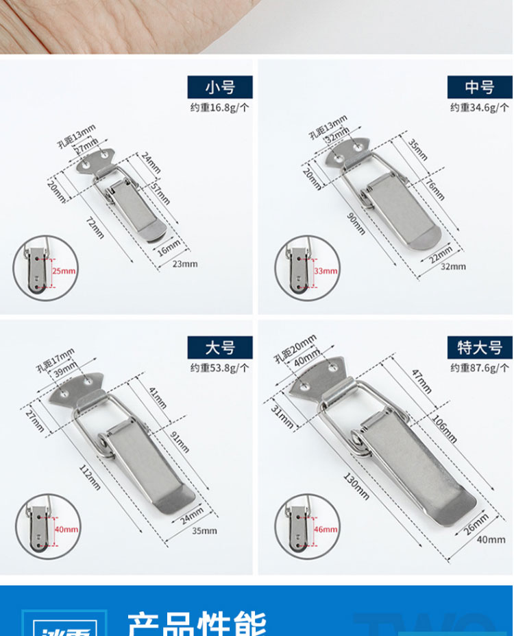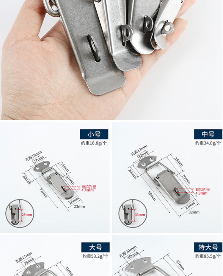• 商品名称:冰禹 304不锈钢鸭嘴弹簧搭扣