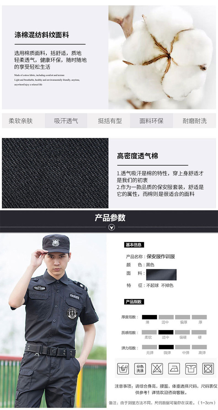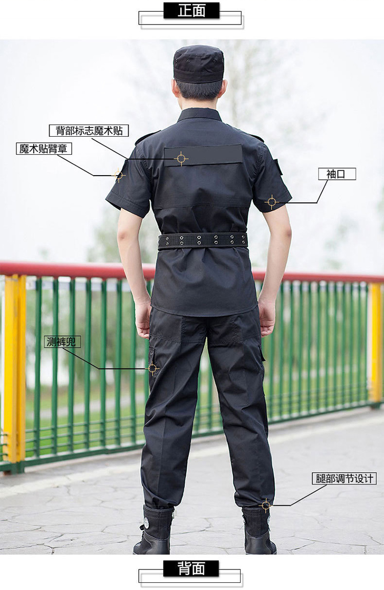 冰禹 保安服套装 BY-5044 黑色 夏季短袖套装(标志+腰带+帽子) 160 1套