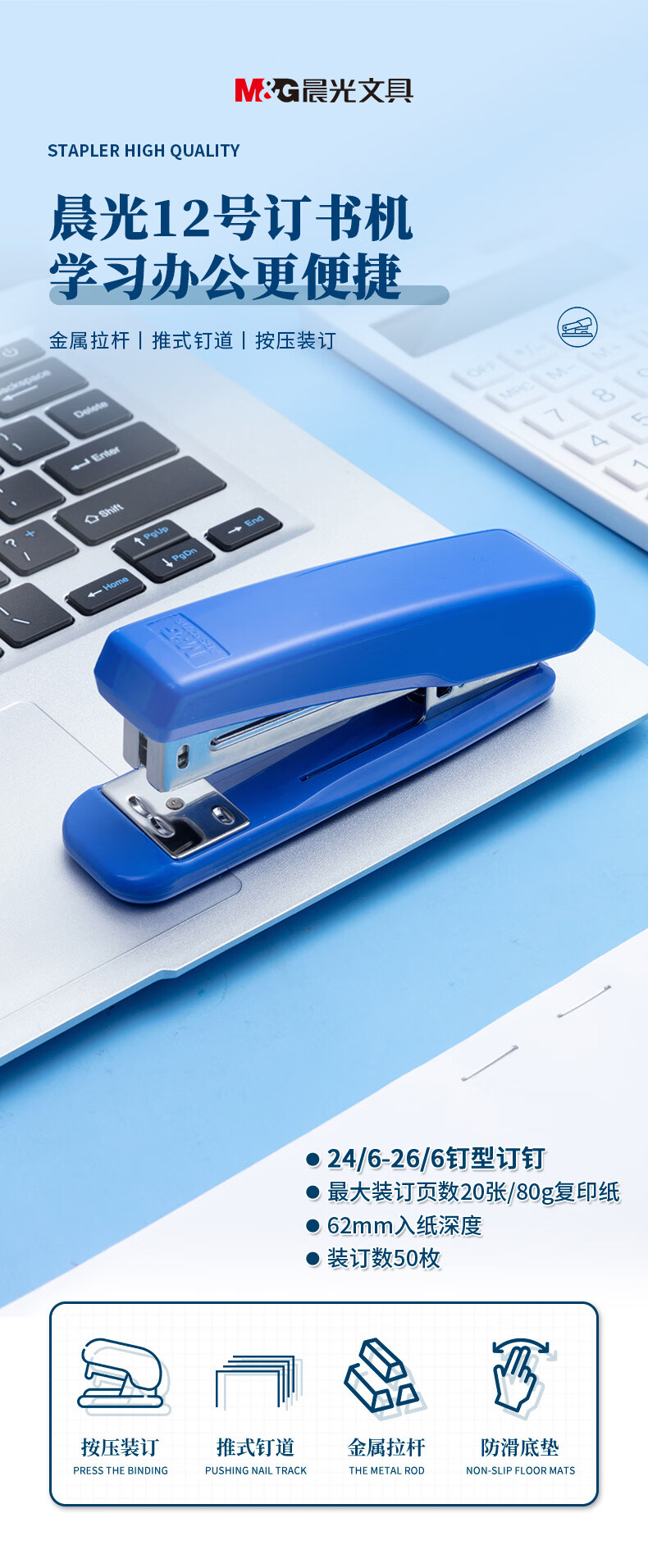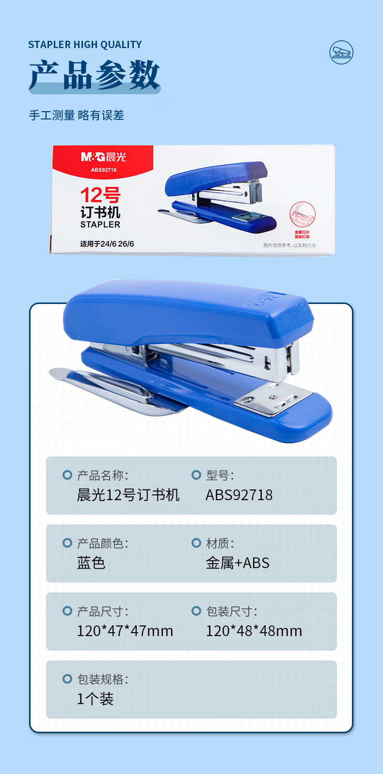 晨光 常规订书机 ABS92718B 适用12#钉 蓝色 1个